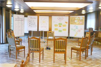 Leinwand, Flipchart, Mataplanwände, Moderationsmaterial, Beamer, Mikrophonanlage, schnelles Internet via Glasfaserkabel, ISDN, LAN/W-LAN im ganzen Haus und Freigelände, Fax- und Kopierservice, CD-Player